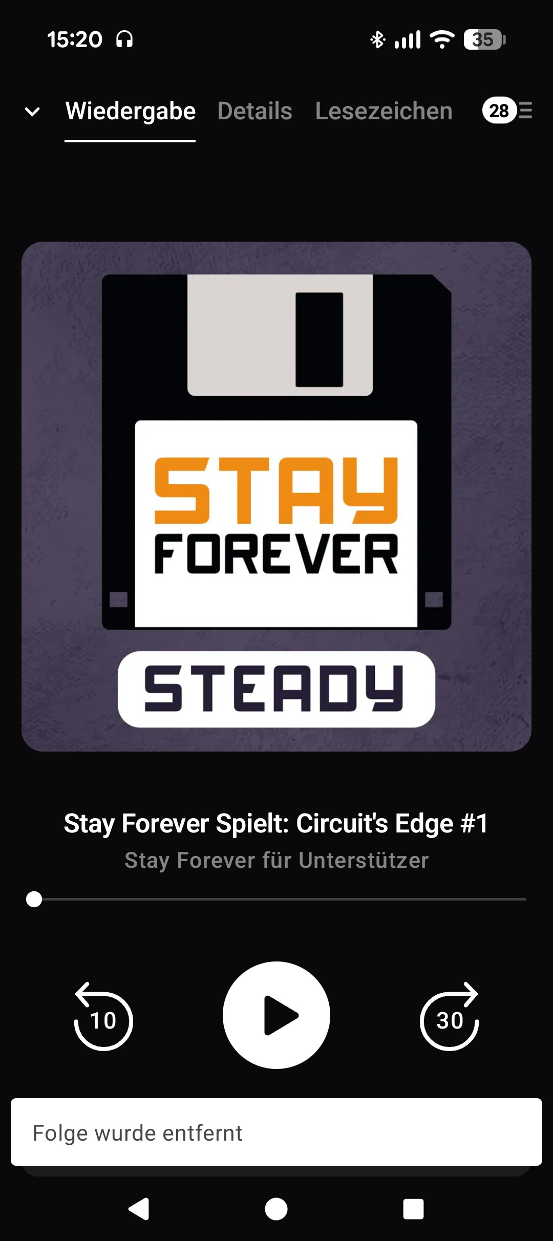 Kann garantieren, dass die Folge zumindest im normalen Podcast-Feed noch da ist, ich hab die erst dieses Wochenende gehört. Bei meiner erneuten Reise durch den Backcatalogue ist mir bislang nur das Noah Falstein-Interview als nicht mehr existent untergekommen, da sagt mir Overcast, der Anbieter habe die Folge entfernt oder sowas.