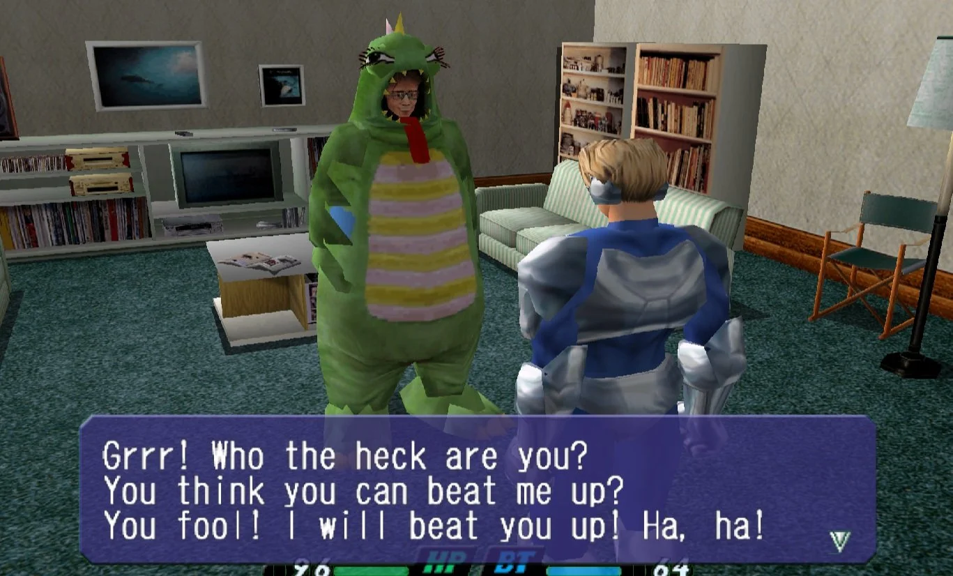 Die Szene lässt sich jetzt entschlüsseln. Hatte keine Ahnung von Rent-a-Hero No. 1. Es ist ein Spiel das urspünglich als 2D Topdown Adventure mit Fighting Einlagen auf dem Sega Mega Drive erschien. Das hier ist die 3D Dreamcast Version.