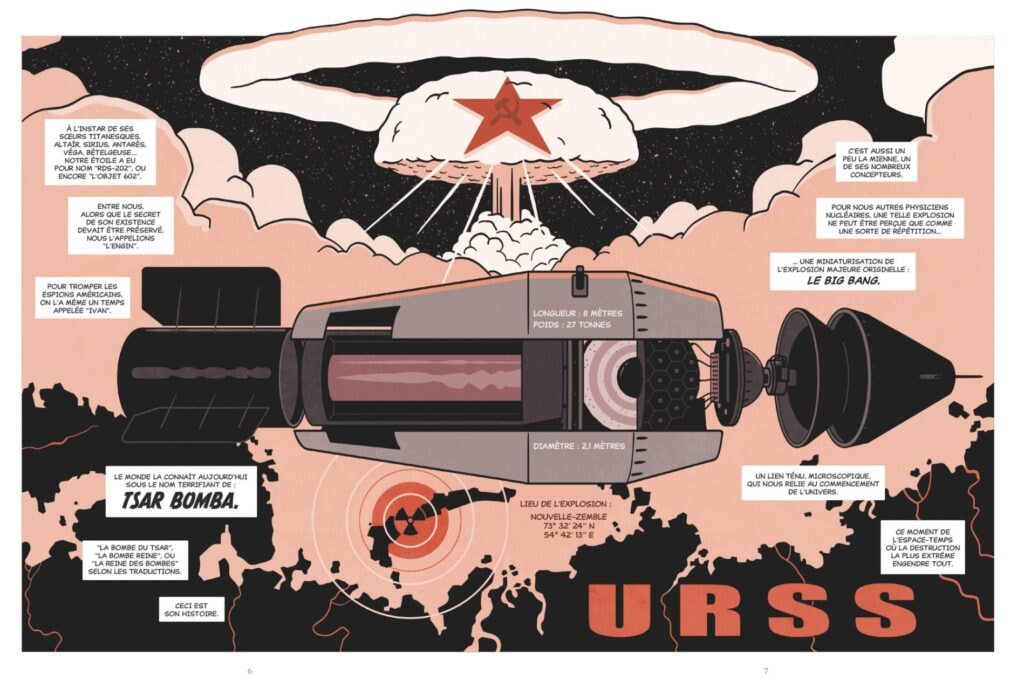 „Tsar Bomba.“ Die Comics-Biografie von Andrei Sacharow, der erst maßgeblich an der sowjetischen Atom- und Wasserstoffbombe mitentwickelt hat, dann vom Glauben an Krieg und Sowjetunion abgefallen ist und für seine Rolle als Dissident später mit dem Friedensnobelpreis ausgezeichnet wurde. Ein Leben genug für viele, hier dargestellt in stilisierten Bildern, wo viel Platz bleibt für Interpretation, mit recht offener, bedeutungsschwerer Sprache (jedenfalls für mittleres Verständnis von Französisch) und in den Panels und Abfolgen durchkomponiert. Hat mich beeindruckt, werde ich nochmal lesen, wenn meine Sprachkenntnisse noch besser sind oder es übersetzt wird. Derzeit leider nur auf Französisch.