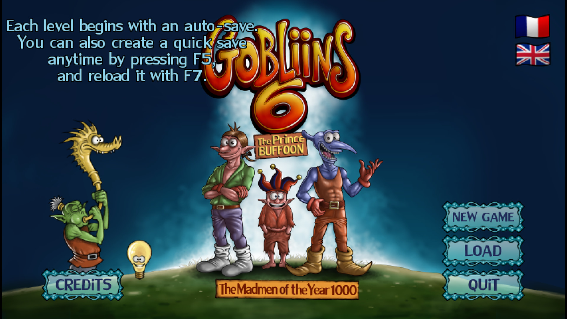 Das Spiel speichert mit jedem Levelbeginn automatisch. Man kann zudem mit F5 und F7 im Level Schnellspeichern. Mit LOAD nimmt man den Standardspielstand. Man kann im Spiel mit F7 auf den Quicksave wechseln.