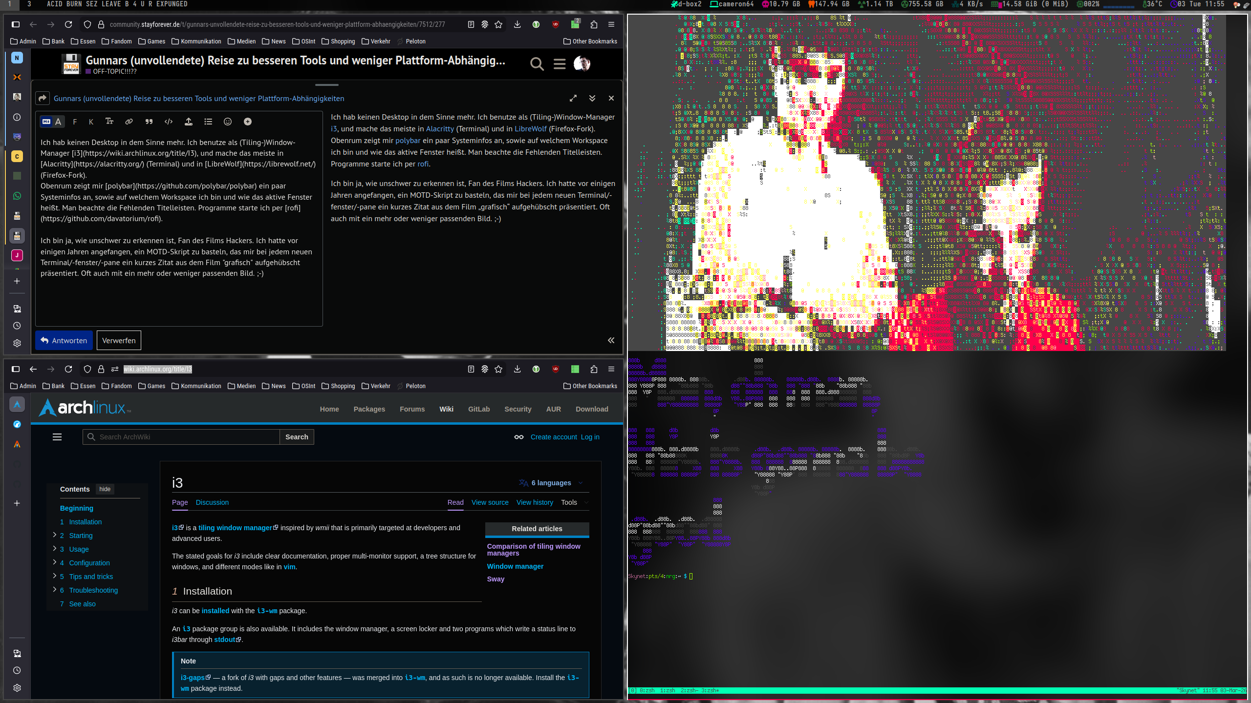 P.S. Bin natürlich an Tag 3, schon im Glow des Hochgefühls, ein tolles neues System aufgesetzt zu haben, gegen den Immutable Core gerannt und hab mir übers Terminal lokal ein ziemlich großes LLM-Ding installiert, was dann irgendwas mit der Speicherreservierung gemacht und das ganze System gestoppt hat. Hat mich zwei Stunden gekostet, den alten Stand wieder herzustellen. War mir eine Lehre.