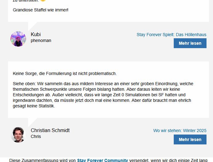 In deinem Bild sieht man die automatische Zusammenfassung von Forumsbeträgen durch die Forumssoftware. Das ist nicht ganz ideal, zugegeben, das könnte noch Trennlinien haben. Aber die universelle Regel ist wie überall: „Mehr lesen“ steht nach dem Beitrag, nicht davor.