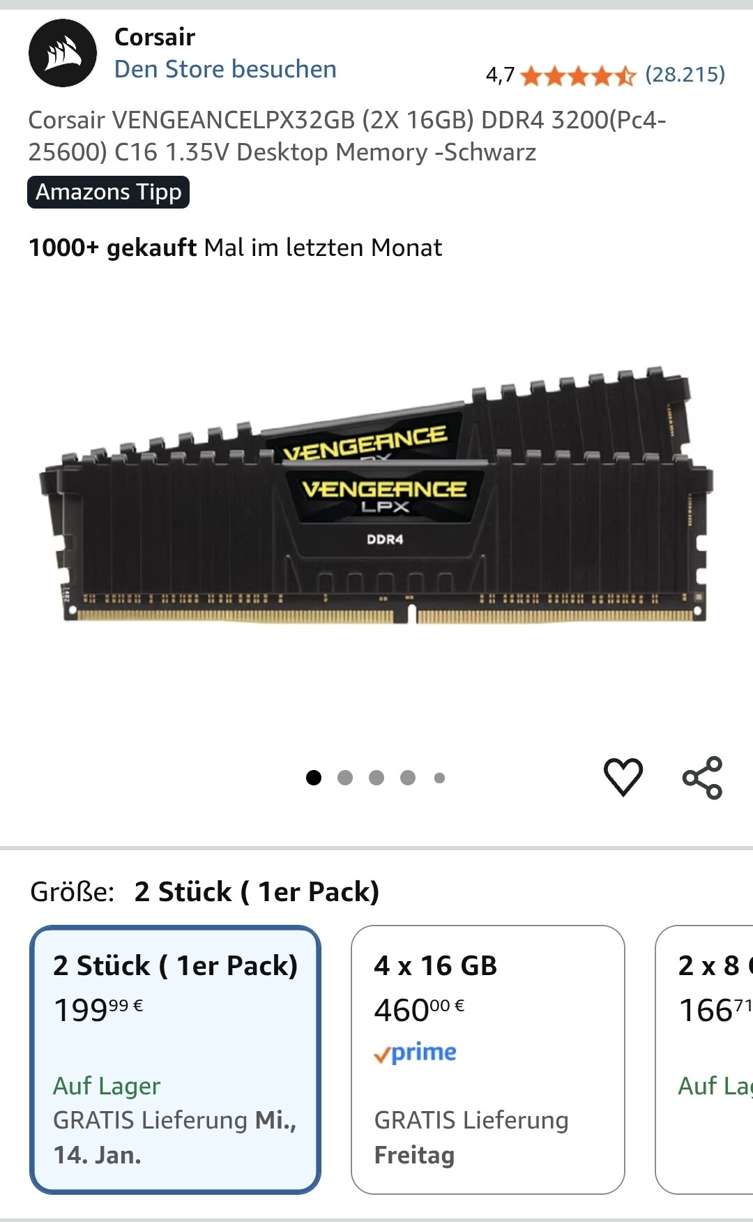Diese beiden Riegel habe ich 2023 gekauft, also 32 GB für zusammen 49,-