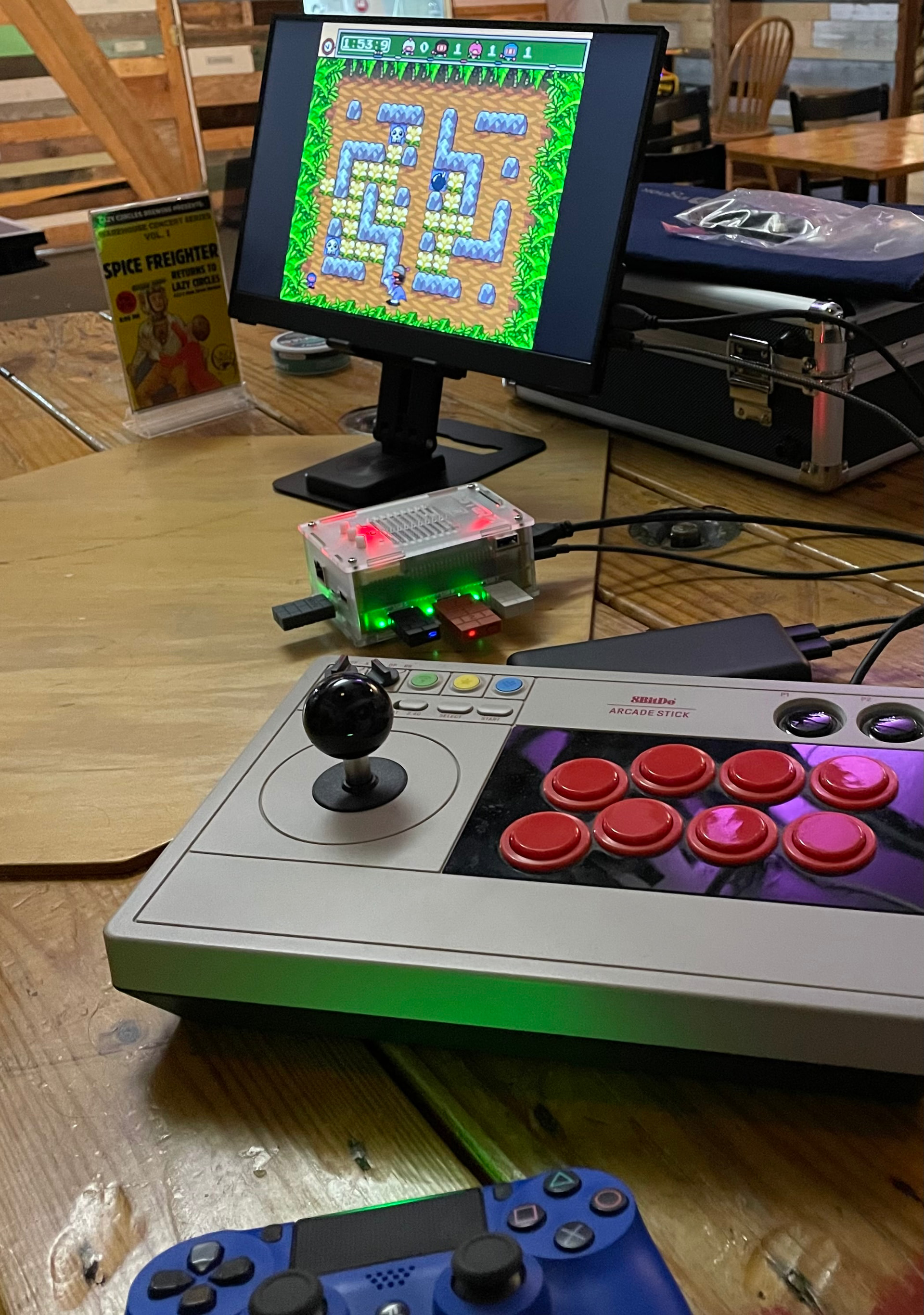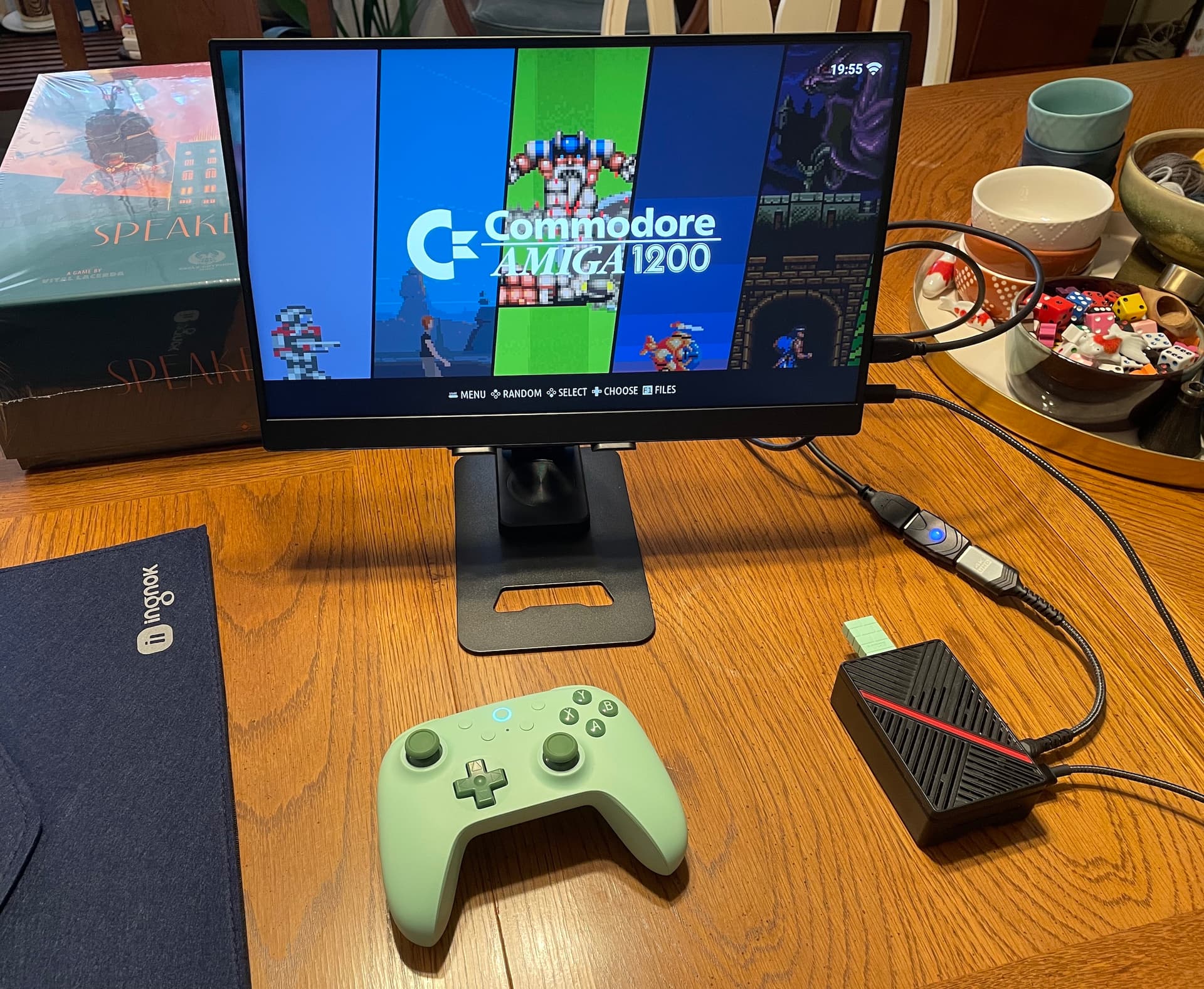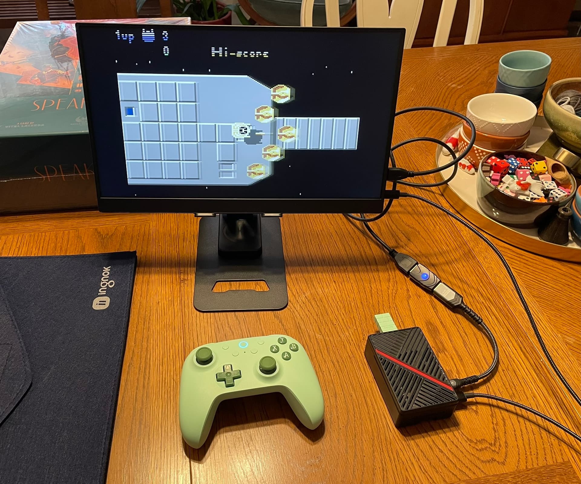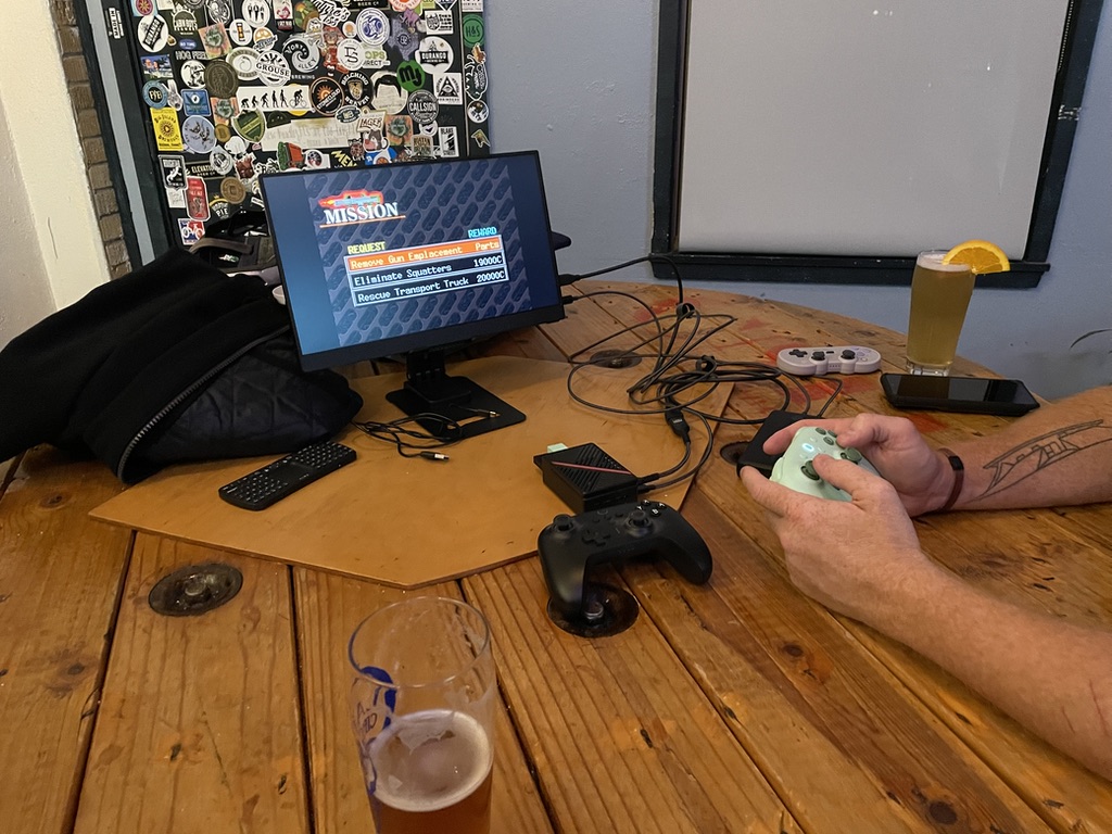Für den Stammtisch in der lokalen Kneipe wollte ich Retrospiele mitnehmen mit einem kleinen portablen HDMI Monitor. Da ich mit dem Fahrrad fahre, muss alles in den Rucksack passen. Einen Raspberry Pi 5 hatte ich eh noch rumliegen, und wollte den auch benutzen, aber ein Minicomputer (Beelink oder ähnliches) würde genauso gut oder besser gehen. Als System habe ich Batocera installiert. Als Monitor habe ich den Ingnok 15.6 Zoll 1080p Monitor von Amazon für $60 genommen.