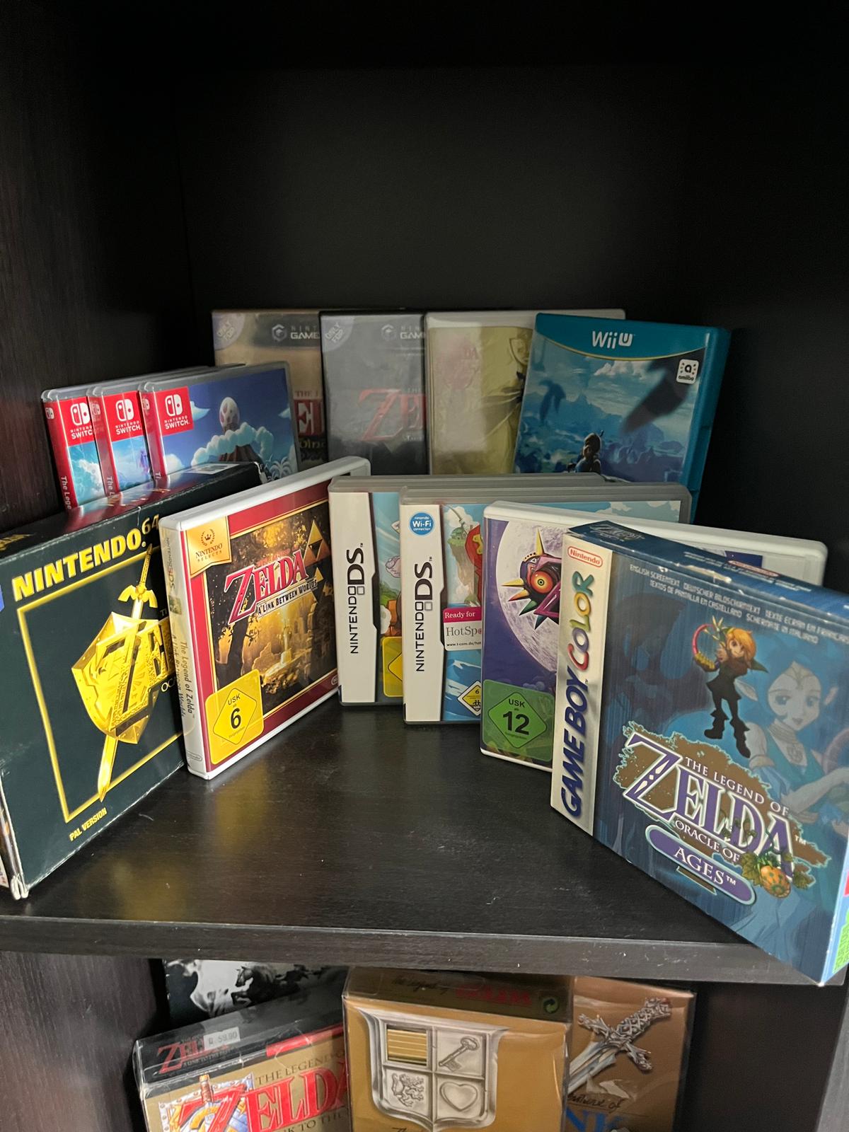 - Ich versuche, alle Zelda-Spiele originalverpackt zu bekommen. Drei fehlen mir noch, aber die Spiele selbst habe ich schon.