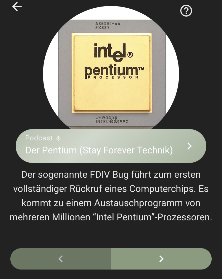 Zum Zweiten ist bei dieser Routine heute etwas Unerwartetes passiert. Als das heutige „Pastpuzzle“ nach dem sog. FDIV-Bug gefragt hat, tauchte in den anschließenden Verweisen die SF Technik - Folge als Referenz auf. Wow, wie cool!