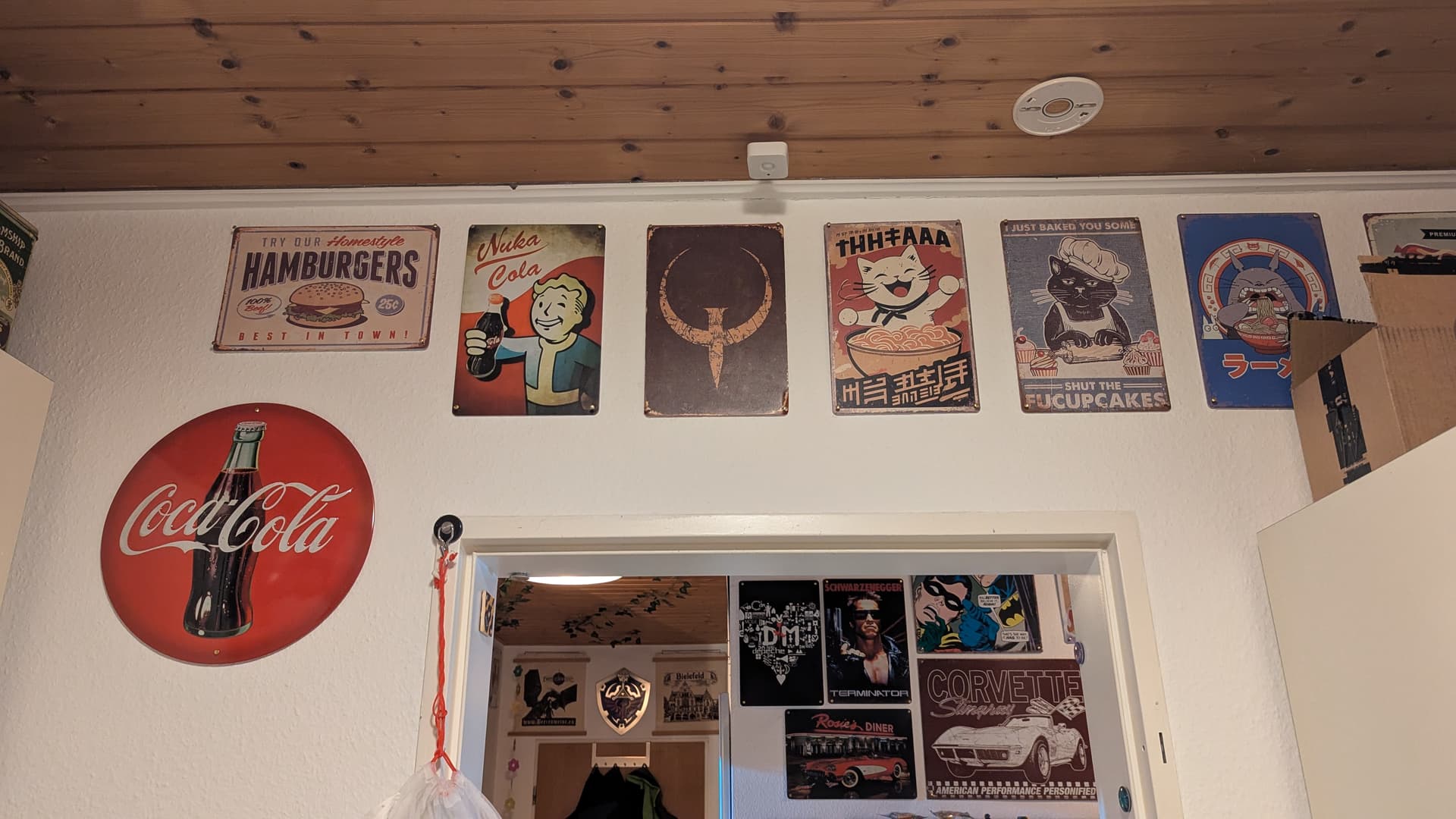 In meiner Küche, über der Tür. Habe mit einer Nagelpistole darauf geschossen und rechts um die Ecke hat sich ein Geheimgang geöffnet ![]()